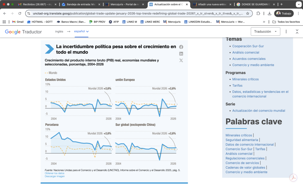El comercio mundial entra en 2026 bajo una creciente presión debido a un crecimiento más lento, la fragmentación geopolítica, la aceleración de las transiciones digitales y ecológicas, y regulaciones nacionales más estrictas. En conjunto, estas fuerzas están transformando los flujos comerciales, las decisiones de inversión y las cadenas de valor globales, concentrándose los mayores riesgos y oportunidades en las economías en desarrollo.