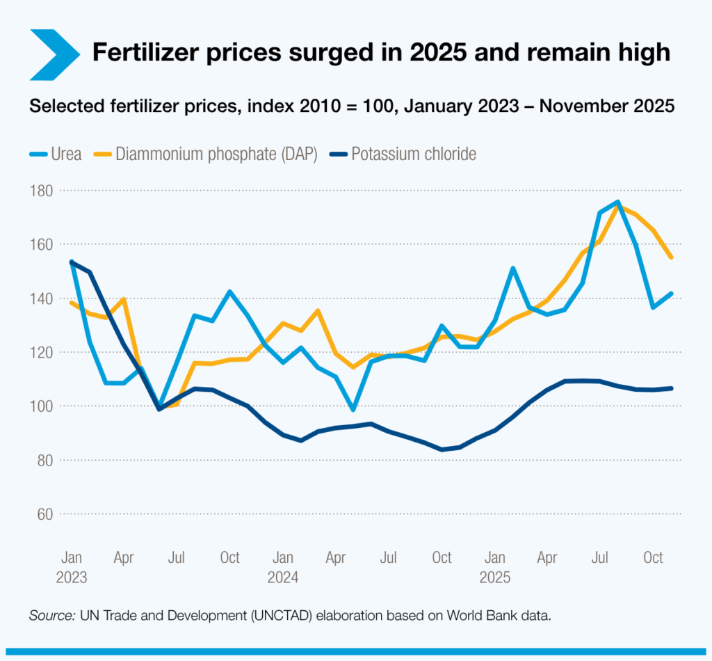 Los altos precios de los fertilizantes y las crisis climáticas siguen amenazando el suministro. El libre comercio, un mejor acceso a los insumos y una agricultura resiliente al clima son esenciales para estabilizar los sistemas alimentarios.