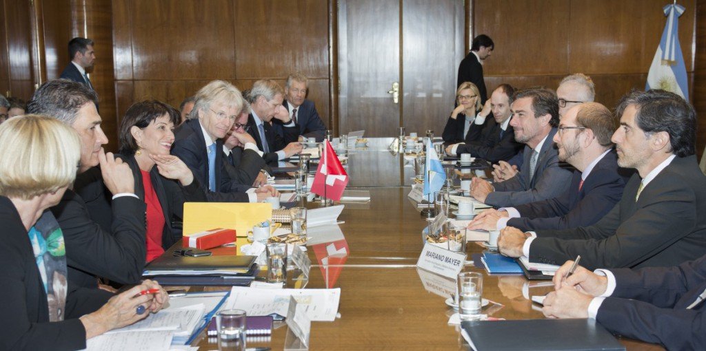 El secretario de Comercio, Miguel Braun; el de Emprendedores y PyMEs, Mariano Mayer y el presidente de la Agencia de Inversiones, Juan Procaccini, recibieron en el Ministerio de Producción a la Presidente de Suiza, Doris Leuthard, acompañada de una delegación de funcionarios y empresarios.