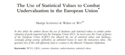 Cuando se debate en una causa ante el Tribunal Fiscal de la Nación la exigencia y aplicación de derechos aduaneros, ...Valoración Aduanera – “El uso de valores estadísticos para combatir la infravaloración en la Unión Europea” – de Martijn Schippers y Walter De Wit – “Journal of World Trade”, n*2 (2023) (artículo publicado ...