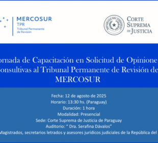 XXI Aniversario MERCOSUR - Reunión de Árbitros del Tribunal Permanente de Revisión Asunción 2025TPR – En la Corte Suprema de Justicia de Paraguay se realizó una capacitación sobre solicitud de Opiniones Consultivas al Tribunal Permanente de Revisión del MERCOSUR
