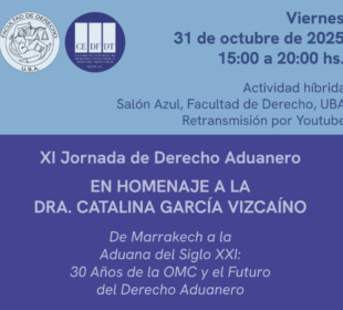 Durante el mes de octubre próximo, se llevarán a cabo en la Ciudad de Buenos Aires, dos Jornadas Aduaneras de relevancia. El ...XVII Reunión Mundial de Derecho Aduanero – Oporto, Portugal (Septiembre 2025)