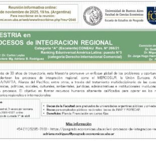 Importante evento académico organizado en la Universidad de Belgrano, para el día 23 de septiembre próximo. Se realiza en el Auditorio “Presidente ...Maestría en Procesos de Integración Regional – UBA, Facultad Ciencias Económicas, Escuela de Posgrado