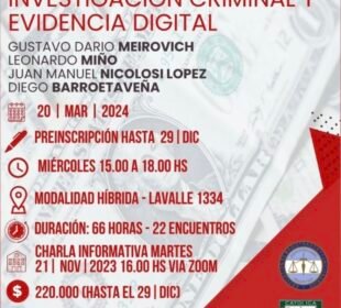 Se publicó la obra “Ilícitos económicos y evidencia digital”, con la dirección de los Dres. Gustavo Darío Meirovich y Rafael Berruezo. La ...Medio Ambiente y Aduana – 29/11