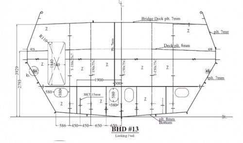 - Peso de acero : el mas pequeño utilizara 42,7 toneladas de acero naval grado A y el mayor 57,2 toneladas de acero naval grado A.