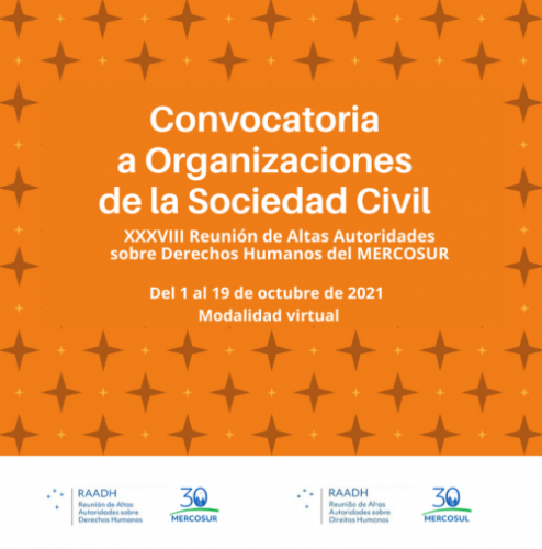 La Presidencia Pro Témpore Brasilera del MERCOSUR, por medio del Ministerio de la Mujer, la Familia y los Derechos Humanos de Brasil, convoca a las organizaciones de la sociedad civil a participar de la XXXVIII Reunión de Altas Autoridades sobre Derechos Humanos del MERCOSUR (RAADH).