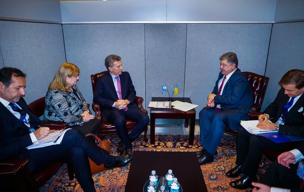 El presidente Mauricio Macri mantuvo una reunión bilateral con su par de Ucrania, Petró Prochenko, con quien dialogó sobre la posibilidad de trazar un puente de cooperación en materia agrícola, cultural y tecnológica.