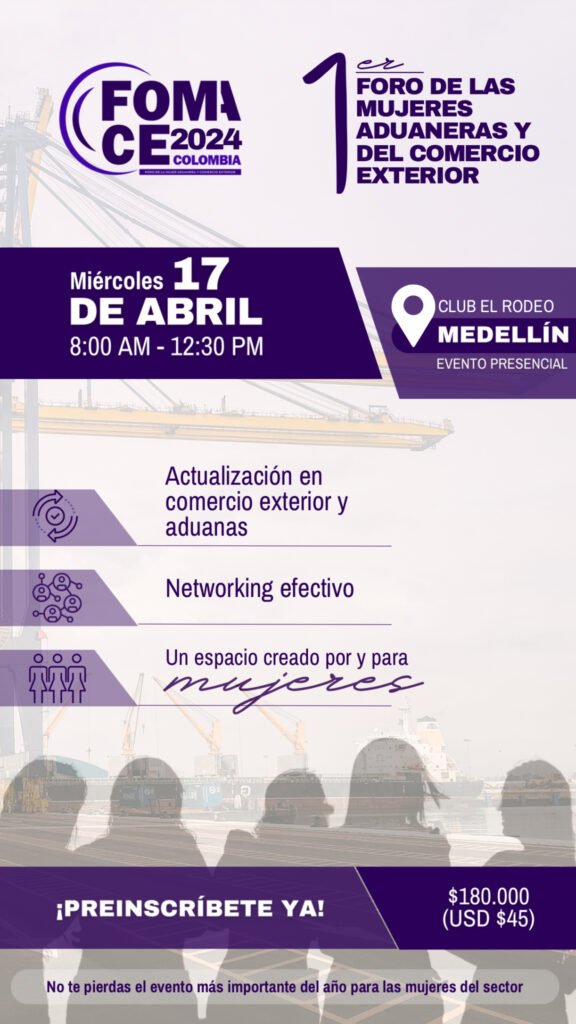 El próximo 17 de abril tendrá lugar en Colombia, ciudad de Medellín, una jornada excepcional. Se reunirán expertas en comercio exterior de México, Colombia y argentina en un evento académico y de networking excepcional, pensado y liderado por mujeres y abierto a toda la comunidad del comercio exterior. Los invitamos a ser parte de un evento único que será un punto de inflexión para nuestra comunidad de mujeres aduaneras.
