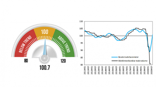 The latest reading of the Goods Trade Barometer is consistent with the WTO’s revised trade forecast of 6 October 2020, which predicted a 9.2% decline in the volume of world merchandise trade in 2020. This outcome would require a sharp rebound in the third quarter following the 17.2% year-on-year decline registered in the second quarter.