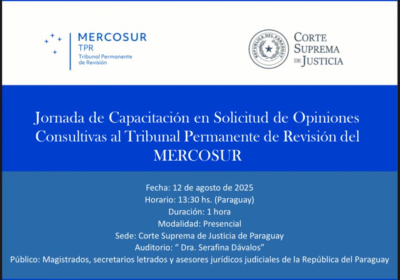 XXI Aniversario MERCOSUR - Reunión de Árbitros del Tribunal Permanente de Revisión Asunción 2025TPR – En la Corte Suprema de Justicia de Paraguay se realizó una capacitación sobre solicitud de Opiniones Consultivas al Tribunal Permanente de Revisión del MERCOSUR