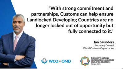 En abril 2025 se publicó el documento “The cost of tax system” [1] el cual trata del costo de la ...Ser litoral no debería significar estar excluido de oportunidades: el papel de las aduanas en la conexión de los países en desarrollo sin litoral – Ian Saunders (Secretario General de la OMA)