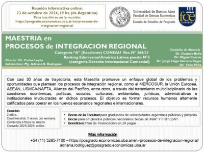 Para inscribirse en la reunión: https://posgrado.economicas.uba.ar/eni-procesos-de-integracion-regional/ MAESTRIA en PROCESOS de INTEGRACION REGIONAL Categoría “A” (Excelente) CONEAU Res. Nº 266/21 Ranking ...La Canciller Diana Mondino recibió a la nueva Embajadora de la República Checa en nuestro país, Jarmila Povejšilová
