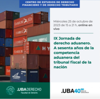 Una distinguida Colega española, nos solicita si podemos colaborar en publicar una invitación procurando la búsqueda de un profesional del ...IX Jornada de Derecho Aduanero (A sesenta años de la competencia aduanera del TFN) – UBA – Facultad de Derecho – CEDFDT – 25 octubre