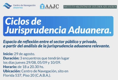 Importante “Ciclos de Jurisprudencia Aduanera”, se realiza desde el próximo 29 de agosto. Duración: 3 encuentros que tendrán lugar los ...Taller sobre modelos de datos de la OMA empodera a funcionarios de aduanas de Argentina