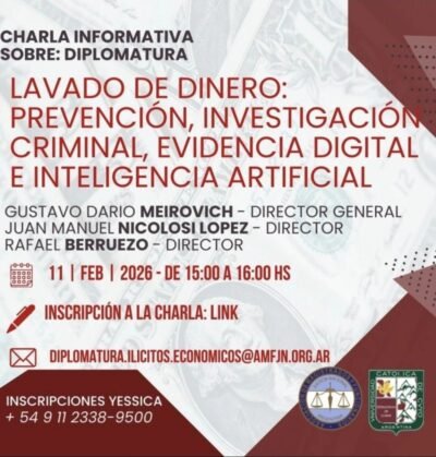 El día miércoles 11 de febrero a las 15hs, llevaremos adelante la charla informativa de la Diplomatura “Lavado de Dinero: ...El Ocaso del Control Aduanero: Desregulación, Vicios Administrativos y Exacción Ilegal bajo la Rg. 5818/2026 – Dr. Daniel Zarucki*