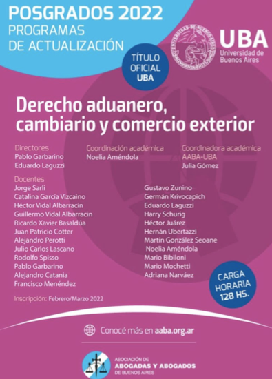 UBA – “Posgrado 2022 – Derecho aduanero, cambiario y comercio exterior”