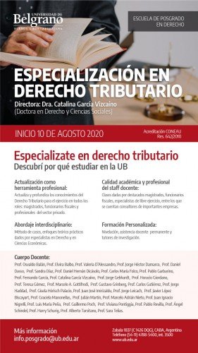 Universidad de Belgrano – Especialización en derecho tributario – Agosto 2020