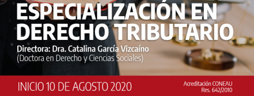 La Escuela de Posgrado en Derecho anuncia el comienzo del dictado de la carrera de Especialización en Derecho Tributario el 10 de Agosto del corriente con duracion de un año con la direccion de la Doctora Catalina Garcia Vizcaino y docentes especialistas en la materia.
