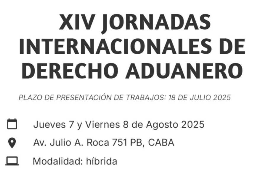 El próximo 7 y 8 de agosto en la Asociación Argentina de Estudios Fiscales se realizará las XIV Jornadas Internacionales de Derecho Aduanero.